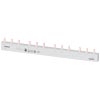 - Pin busbar, 10 mm2 connection: 3-phase/+ 8x phase touch-safe for 1FI, 4-pole, NLI+8LS, 1-pole