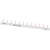 - Compact pin busbar, 10mm2 connection +/AS 12x CBE 1 MW touch protection 12 MW fixed length